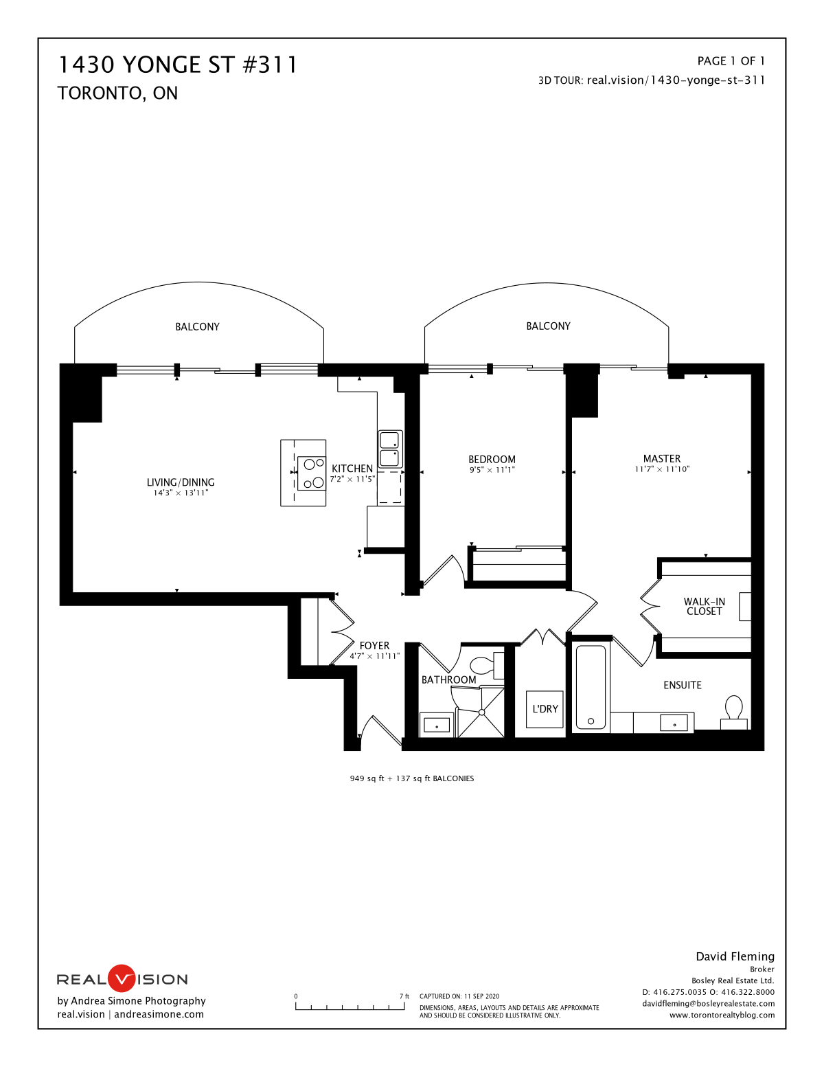 949 sq ft + 137 sq ft BALCONIES